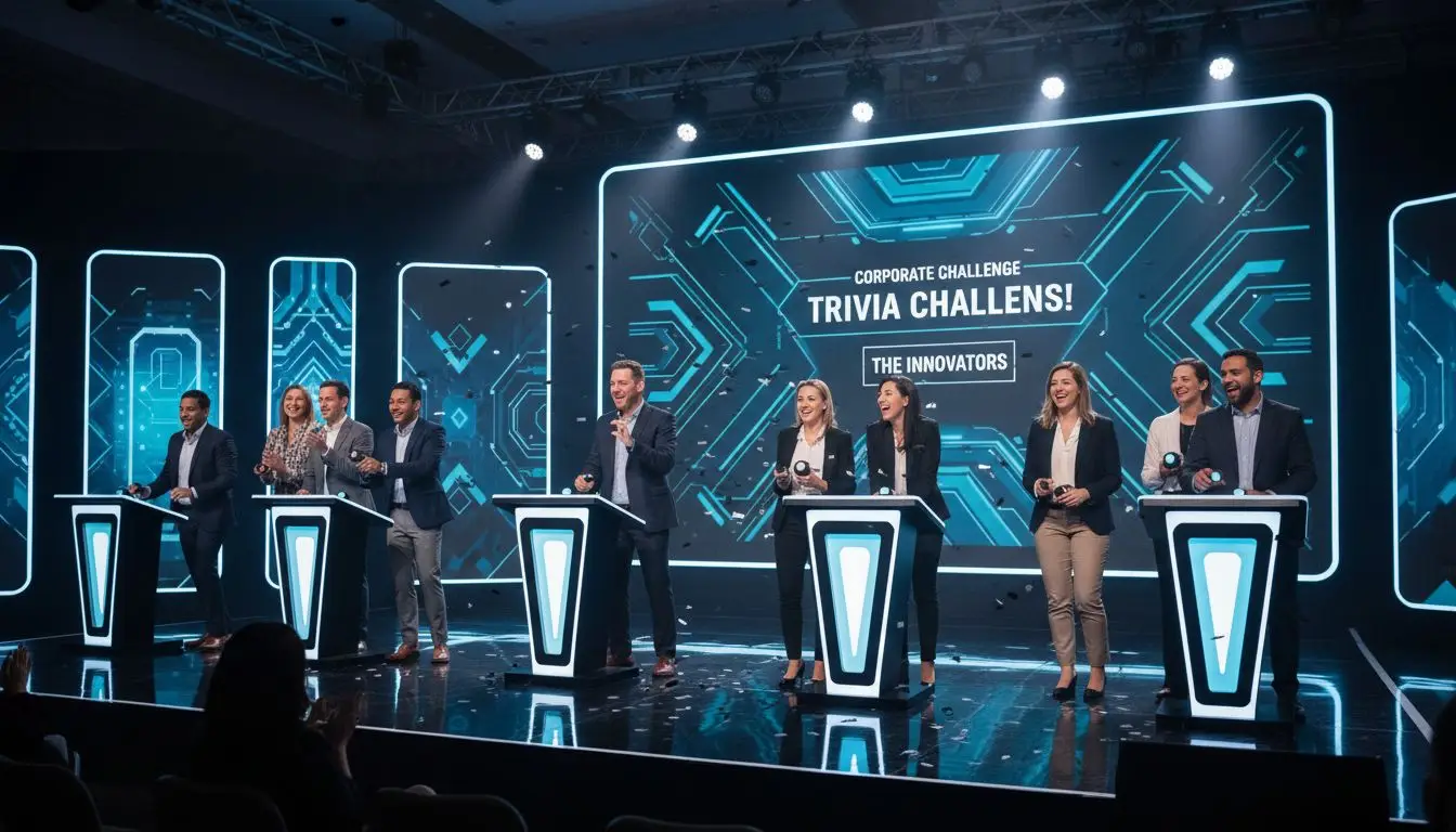 Interactive game shows with real wireless buzzers create moments of genuine excitement that break down hierarchical barriers. I've watched CEOs and interns high-five over correct answers, creating connections that translate into better workplace communication.