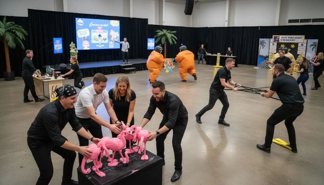 Physical comedy gets teams moving and laughing, which is excellent for morale during multi-day events at convention centers.