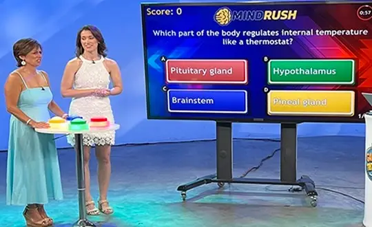 Yes! We bring all wireless buzzers, digital screens, microphones, and production elements for a seamless, professional experience at every event.