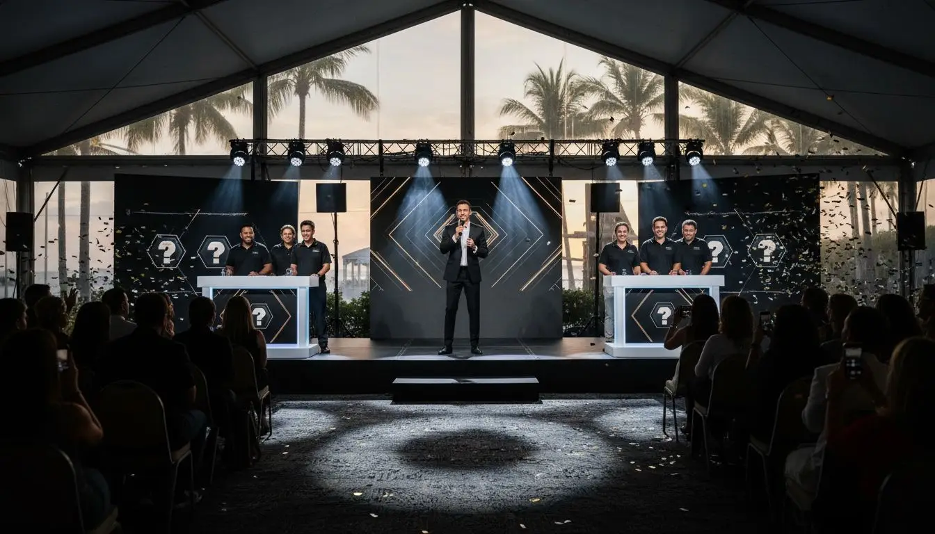 Buzzer-based formats force teams to listen, assign roles quickly, and trust a teammate to answer under pressure — real-world skills mirrored in fast-moving projects. After just one buzzer round, you'll see quieter team members take on leadership roles and cross-functional teams clarify communication lanes. Morale rises because wins are instant and visible; communication improves because teams must structure answers and share knowledge efficiently. These measurable behaviors are why corporate planners bring game shows to Orlando and Tampa for company retreats and large conventions.